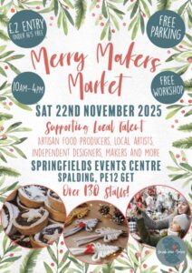 We will be at the Merry Makers Market at Springfields Event Centre, Spalding, PE12 6ET, 10am to 4pm on Saturday 22 November.