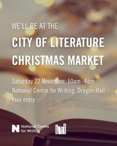 We’ll be at the Norwich City of Literature Christmas Market at the National Centre for Writing, Dragon Hall, King Street, Norwich NR1 1QE,  on Saturday 22 November from 10am to 4pm.